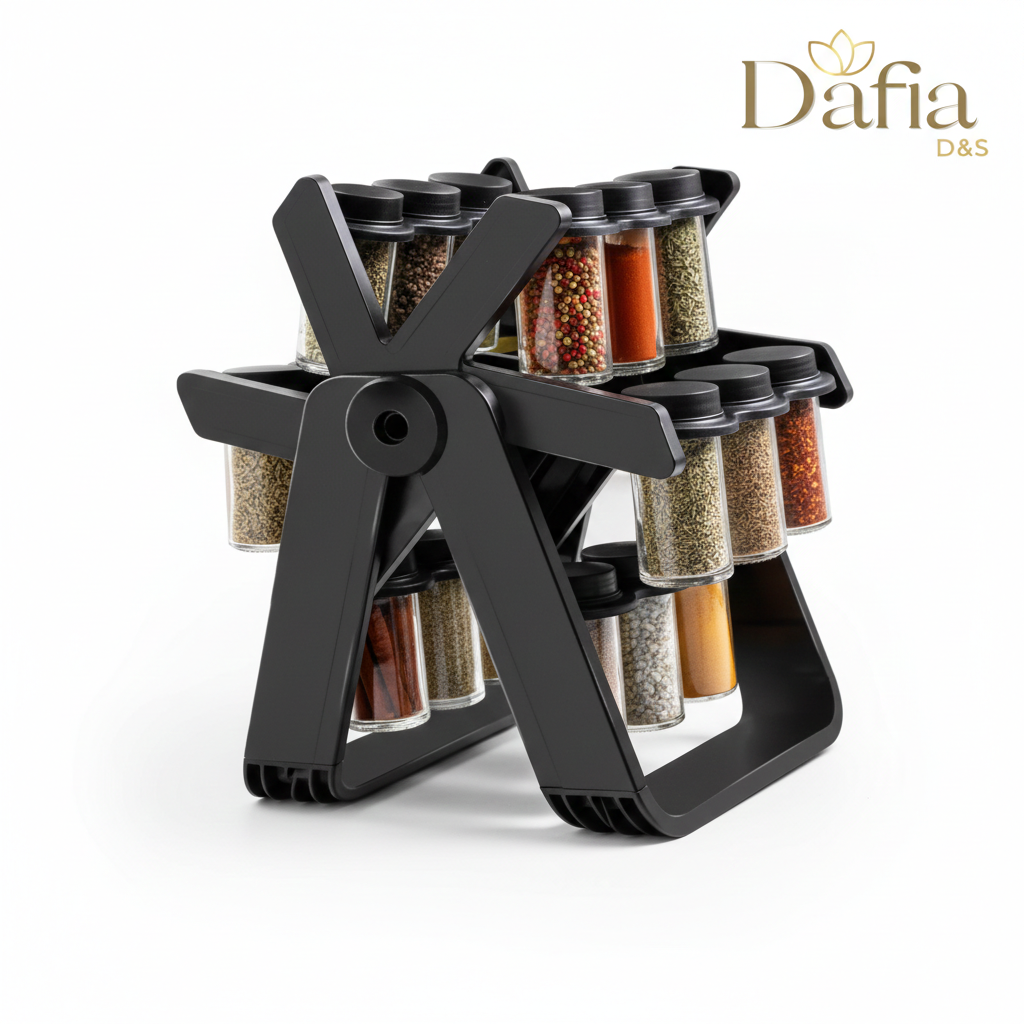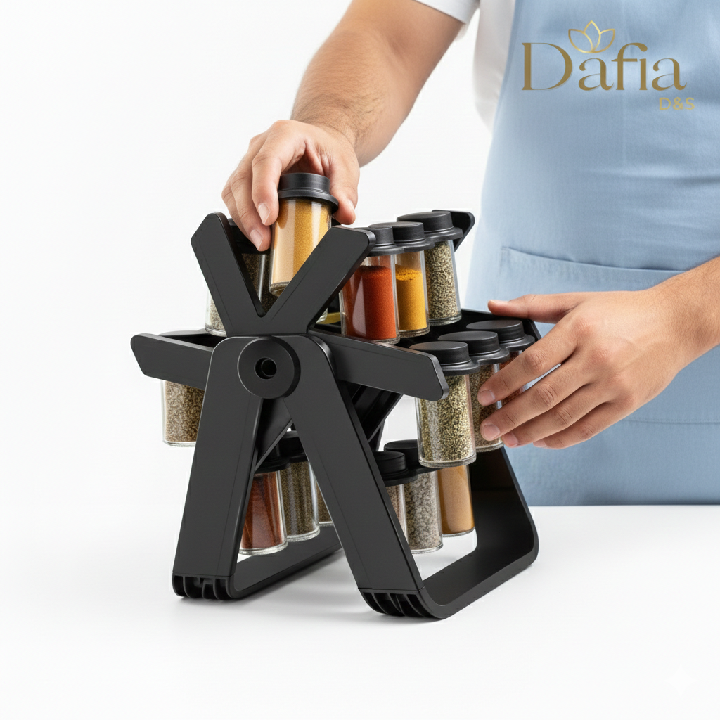 El mecanismo giratorio te permite acceder rápidamente a la especia que necesitas, ahorrándote tiempo en la preparación de tus platillos. El diseño ergonómico asegura comodidad, mientras que la estructura estable mantiene el orden.