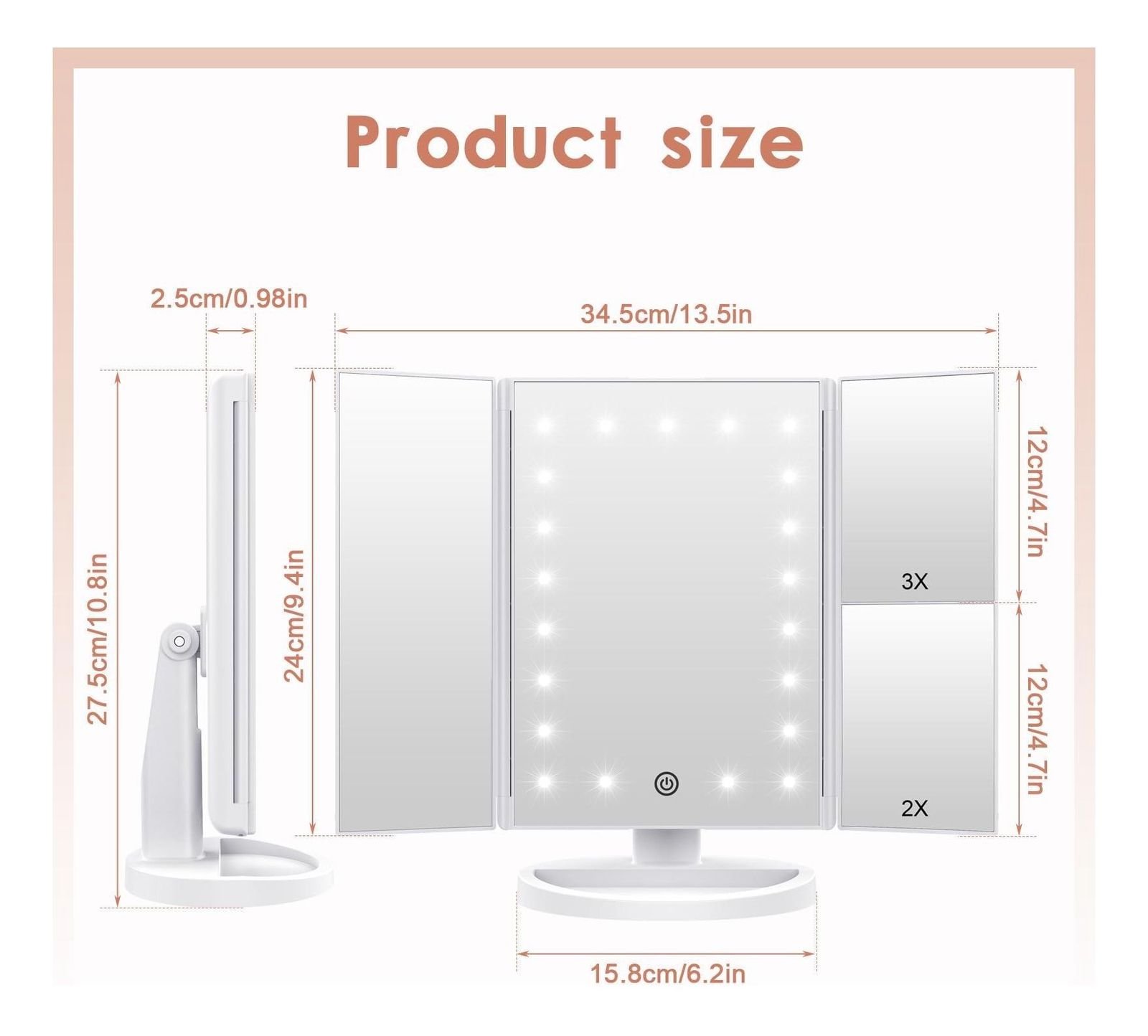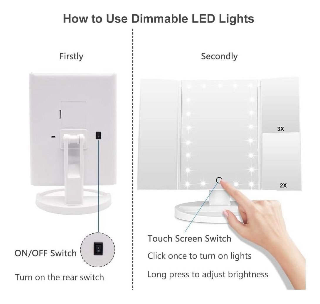 Este espejo combina estilo y practicidad. Su diseño moderno se adapta a cualquier espacio, ya sea un dormitorio o un tocador. Además, cuenta con un espejo de 1x ° para que puedas ver cada ángulo y detalle con claridad.