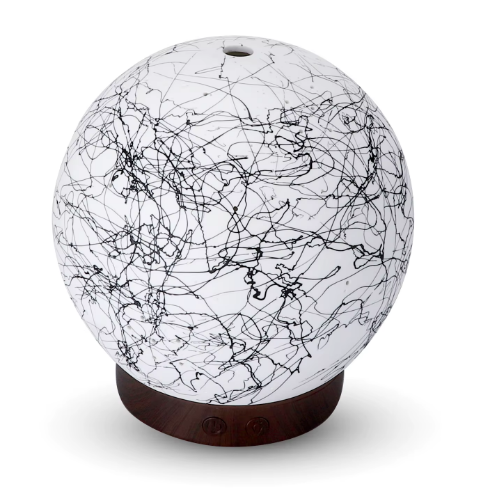 El humidificador y difusor de aromas con diseño esférico aporta un toque de refinamiento a cualquier espacio. Su forma moderna y acabados impecables lo convierten en un accesorio decorativo ideal.