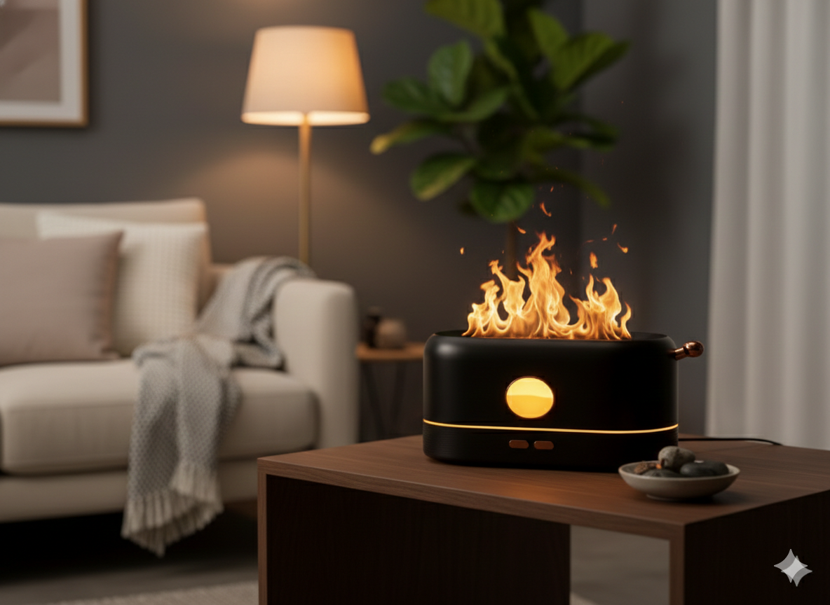 Con este humidificador de diseño único, disfruta de un ambiente cálido y acogedor gracias a su exclusivo efecto de llama LED. Ideal para complementar la decoración de tu hogar, este aparato no solo humidifica el aire, sino que también añade un toque de estilo y relajación a cualquier habitación.