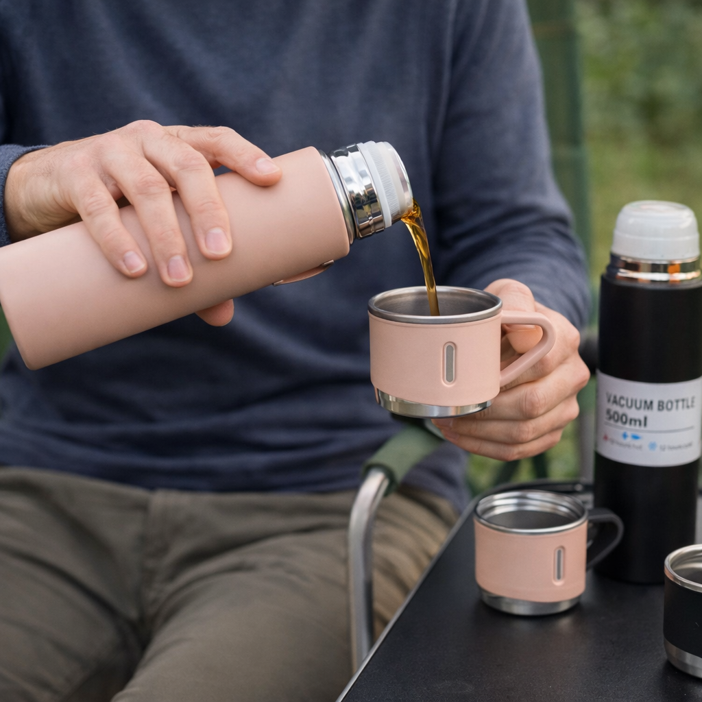El termo de acero inoxidable de 500ml está diseñado para preservar la temperatura de tus bebidas calientes durante horas. Fabricado con materiales de alta calidad, ofrece durabilidad y óptimo rendimiento.